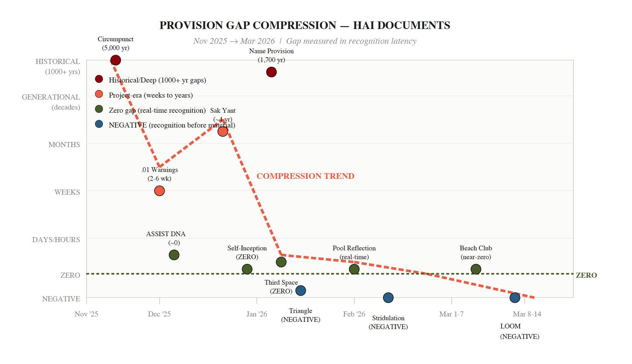 Three frameworks. 78+ lived narrative chapters. 80+ HAI documents. Multiple academic convergences. Not through grinding harder—through collaboration.
